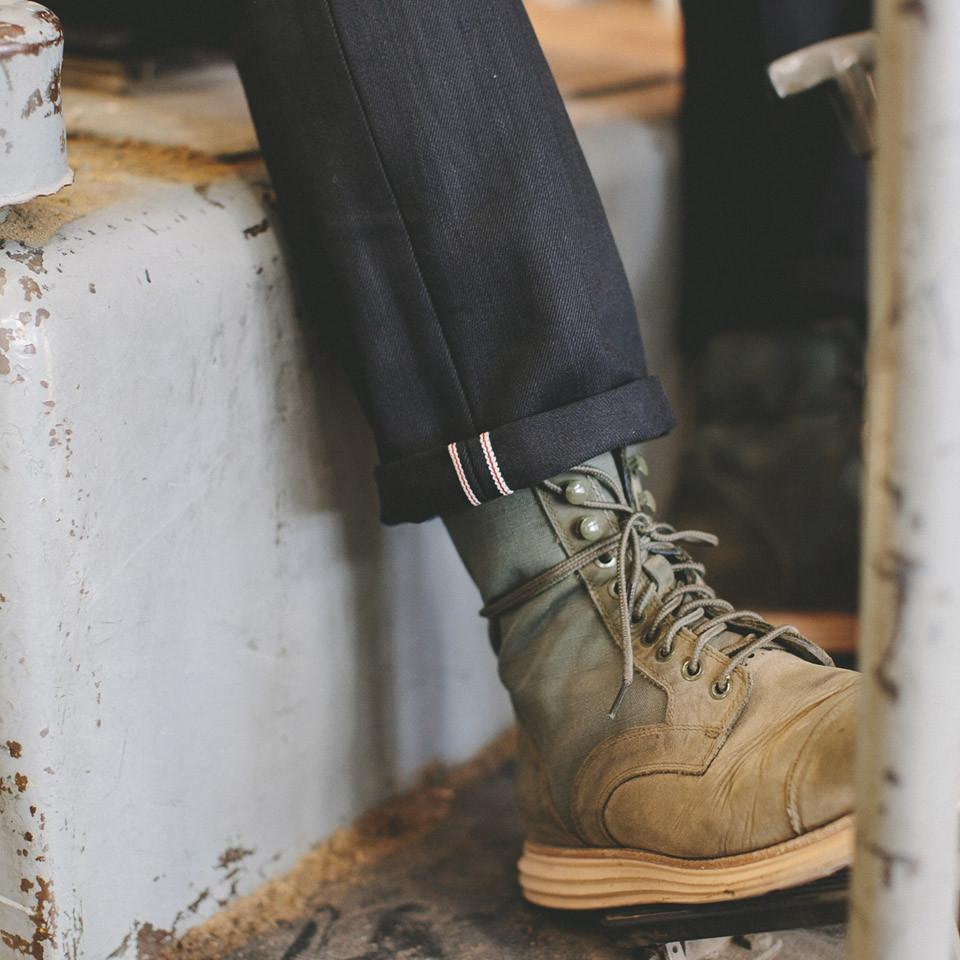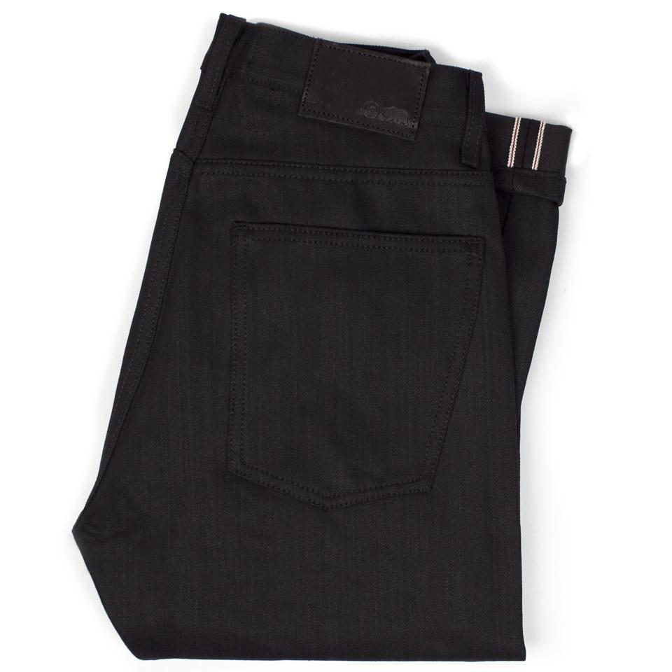 To create a more bad ass pair of jeans, we started by going to Italy. We'd heard of a certain place that had shuttle looms. The rarest breed of looms that make the most beautiful denim, the old fashioned way. At 14.75 ounces; it's burly but still built to move. This is a true black jean: black warp and weft, black YKK hardware and black Wickett and Craig steer hide patches. These jeans feature our San Francisco map pocking and are proudly constructed in the state of Cali-for-ni-a.