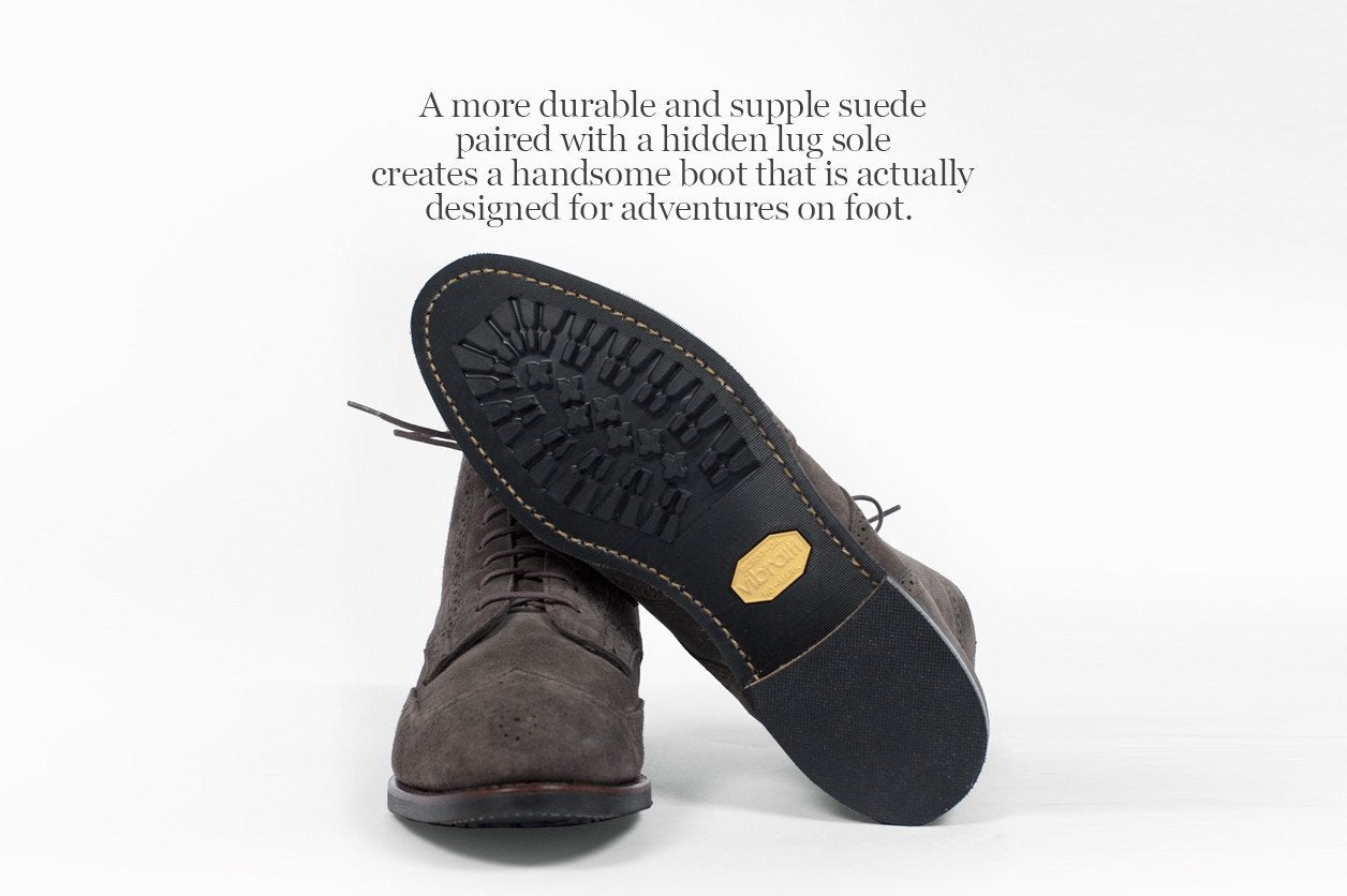 - Vibram 430 inset minilug sole w/ no slip rubber heel.