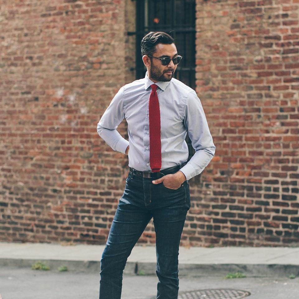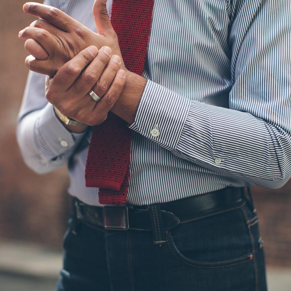 A versatile dress shirt that looks as good with a tie as it does worn under a suit jacket. Comes in a Navy Bengal Stripe. Shop Essentials.