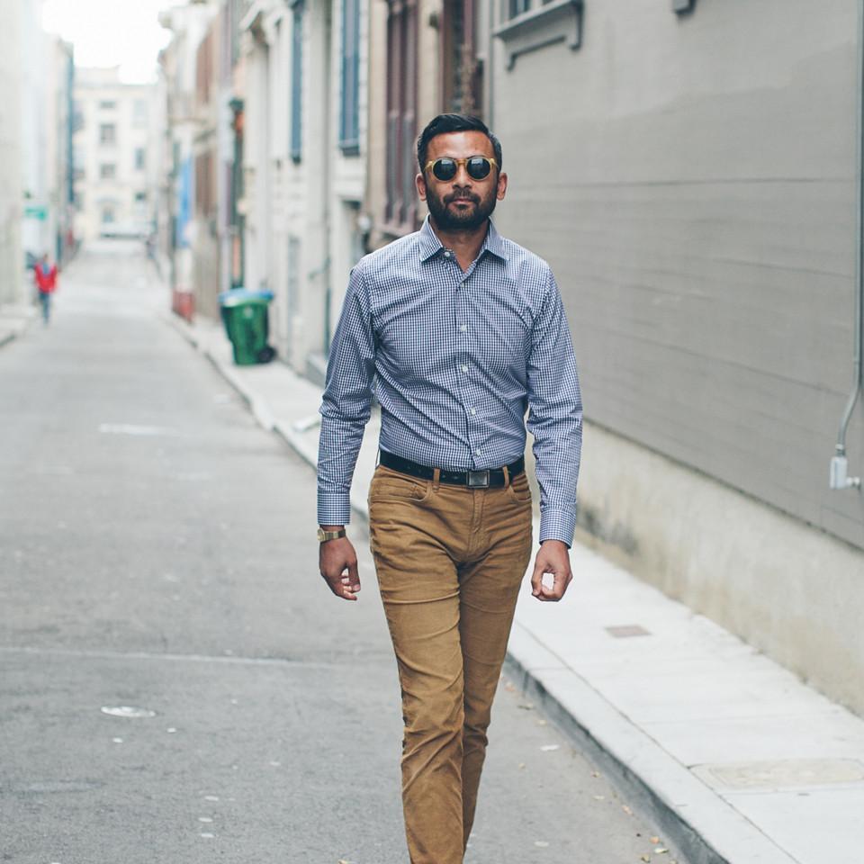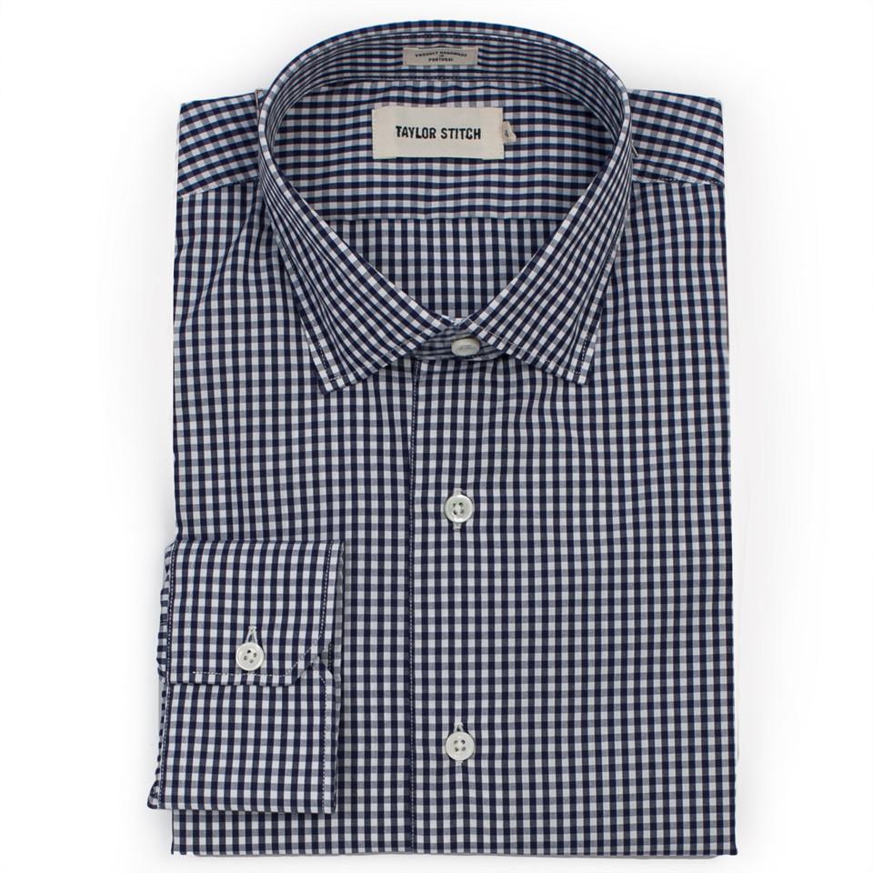 A versatile dress shirt that looks as good with a tie as it does worn under a suit jacket. Comes in a Navy Mini Gingham. Shop Essentials.
