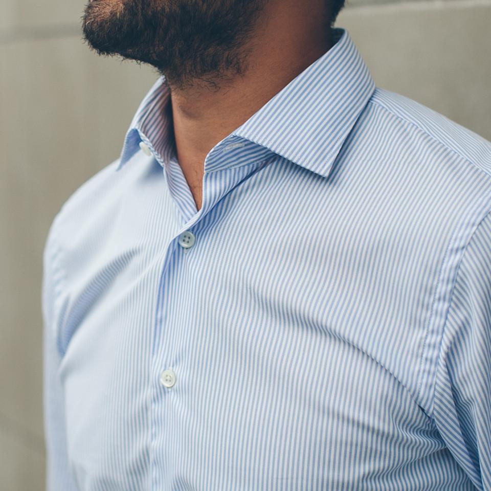 A versatile dress shirt that looks as good with a tie as it does worn under a suit jacket. Comes in a Sky Blue Bengal Stripe. Shop Essentials.
