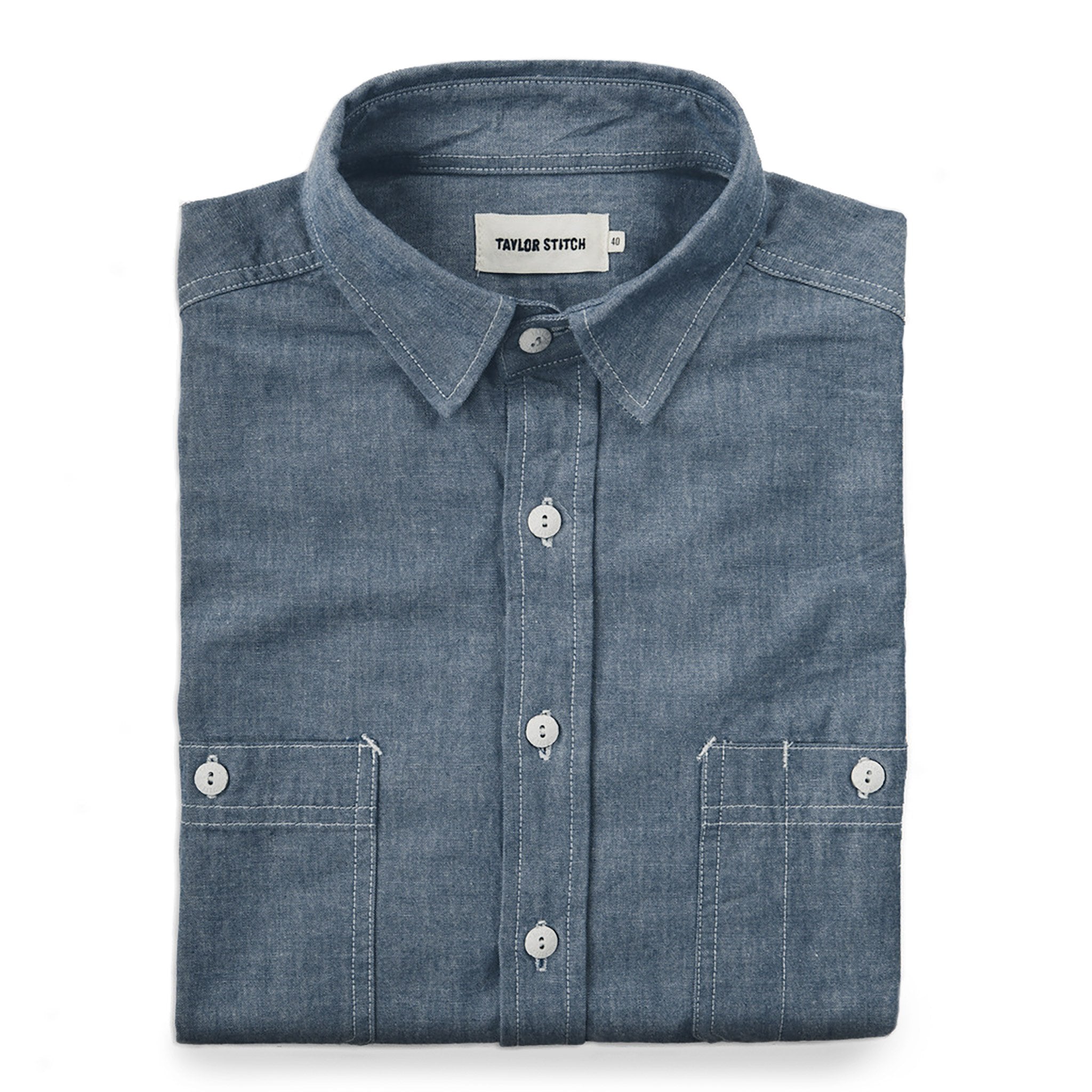 The California-keeps things casual. Crafted in Portugal from blue Japanese Chambray, this shirt gets better with every wear. In Stock Now.
