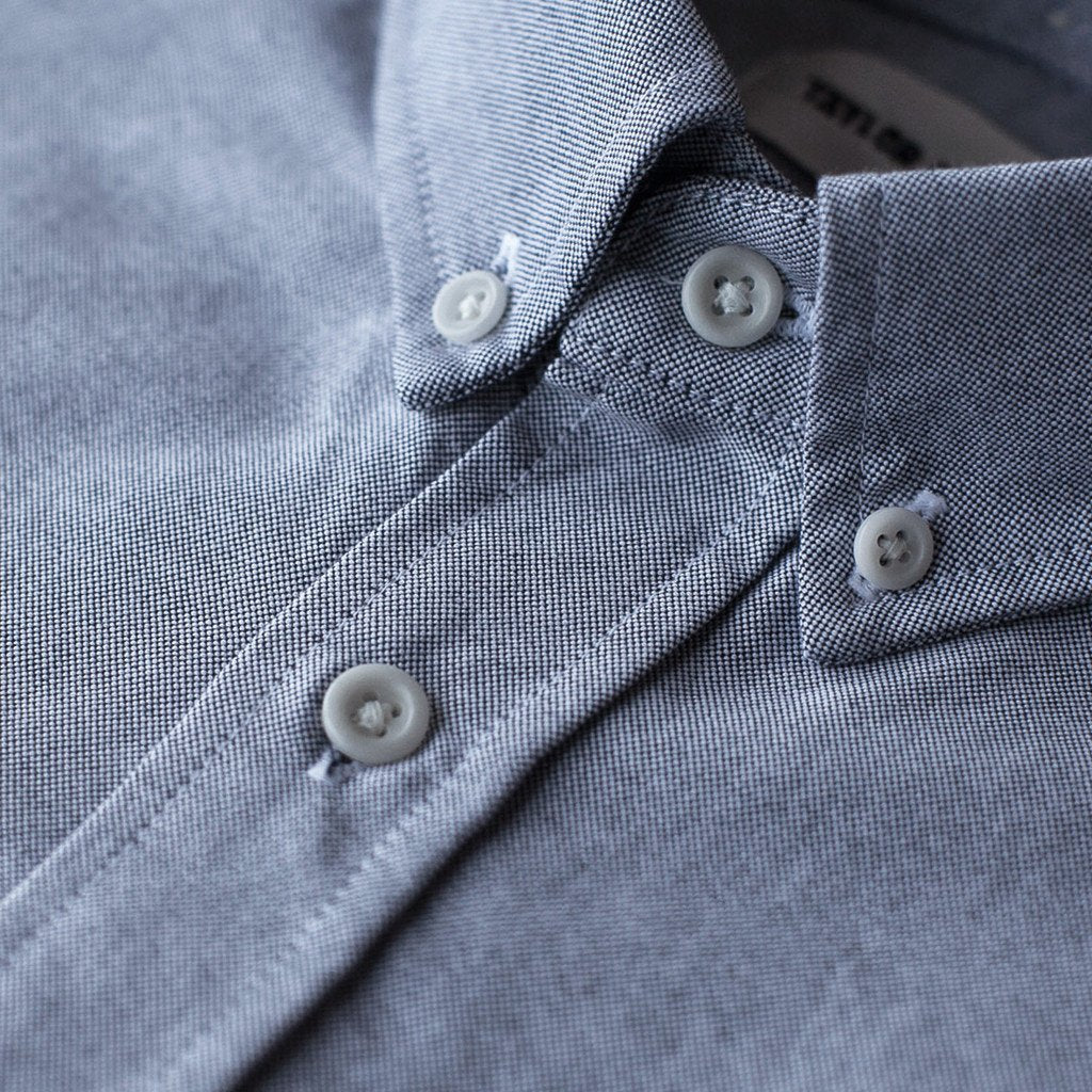 Our staple shirt has a tailored fit with a triple button collar. 7 years in the marking, this classic charcoal oxford is never understated. Shop Essentials.