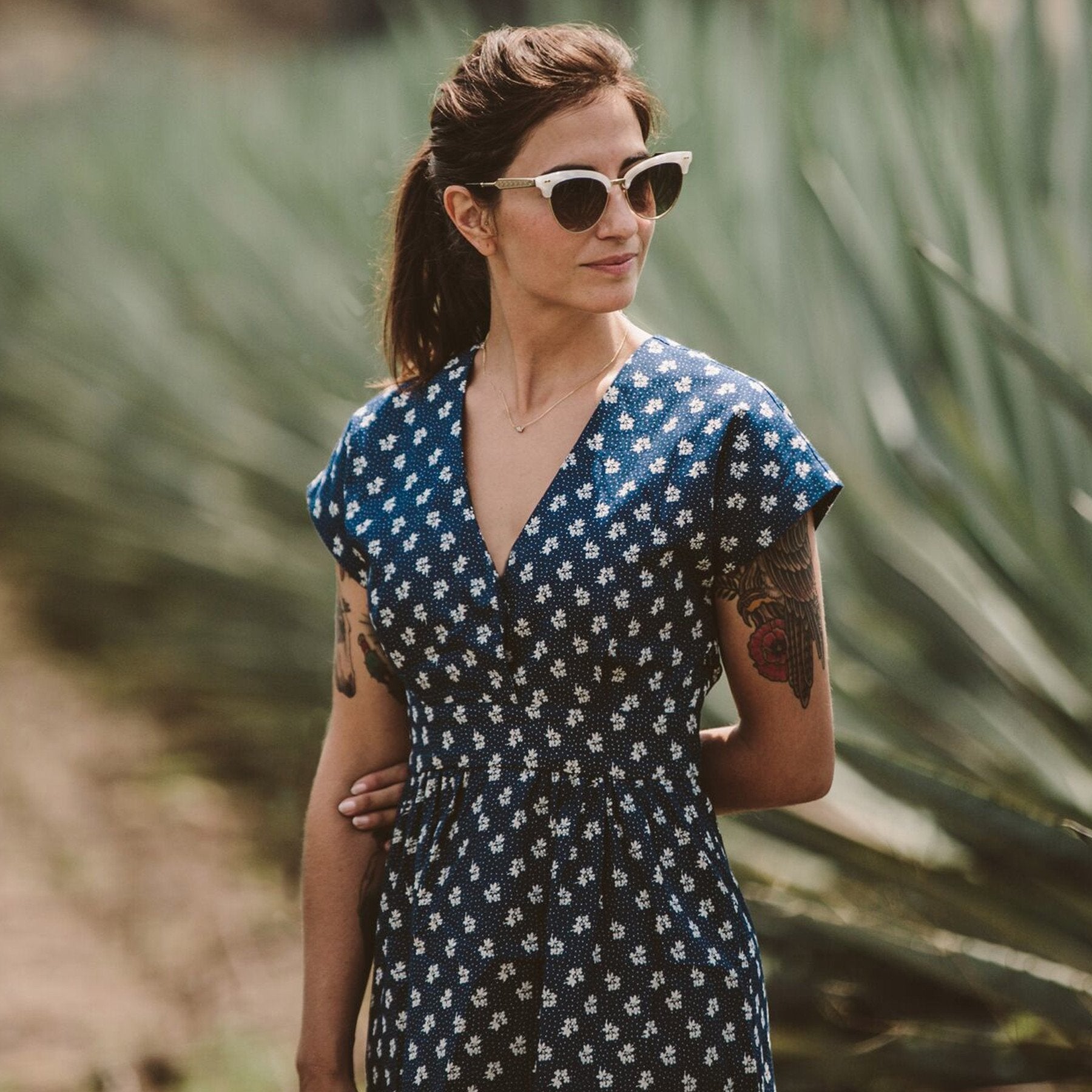 The Emma is everything a dress should be: flattering to the figure, crafted for graceful movement. The V neckline and tailored waist yield an undeniably feminine silhouette. A dolman sleeve and midi length allow for easy wear. We ladies have it pretty good, don't we?