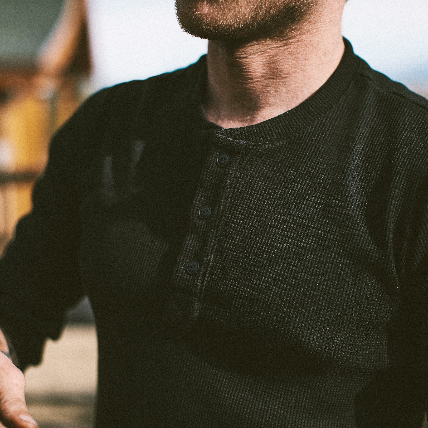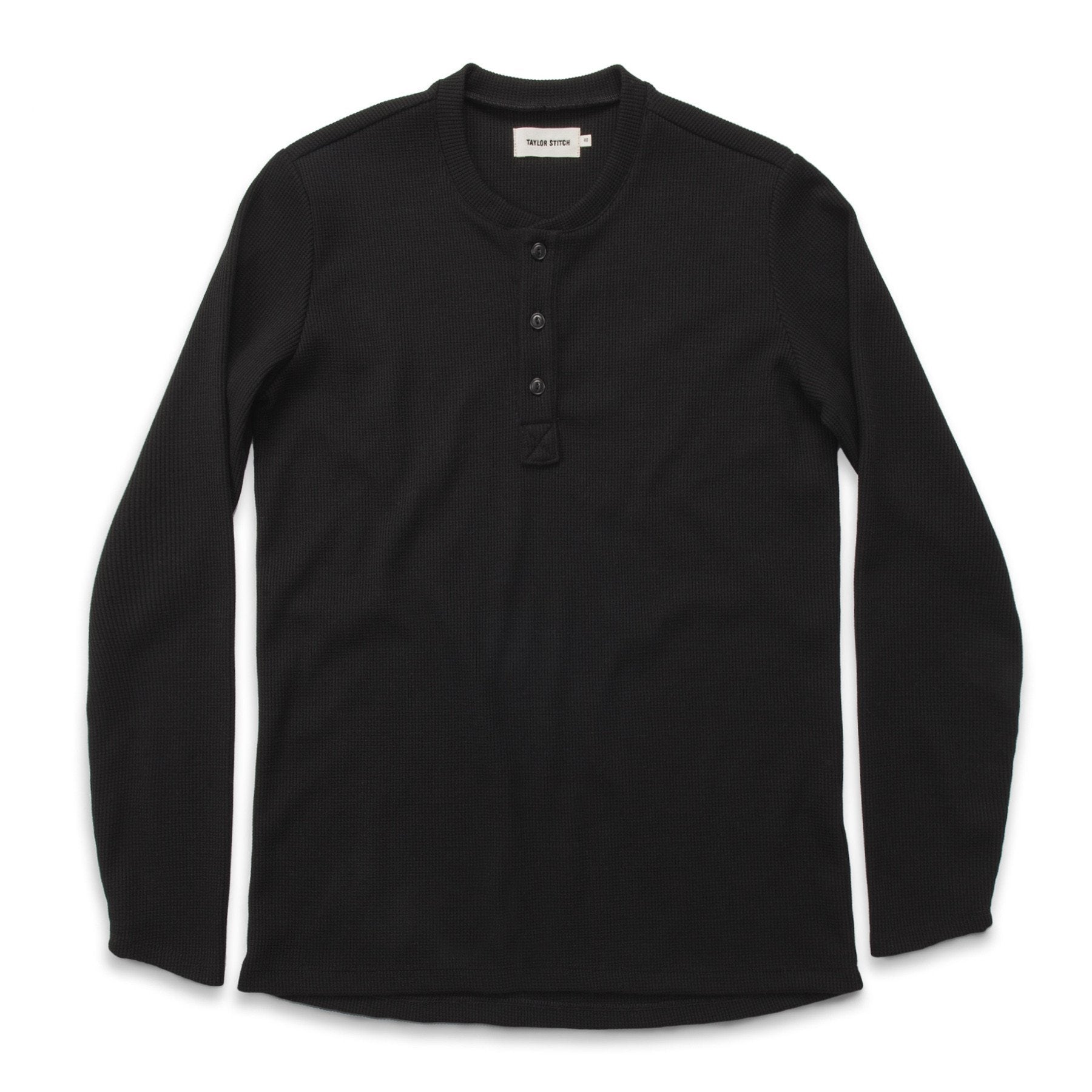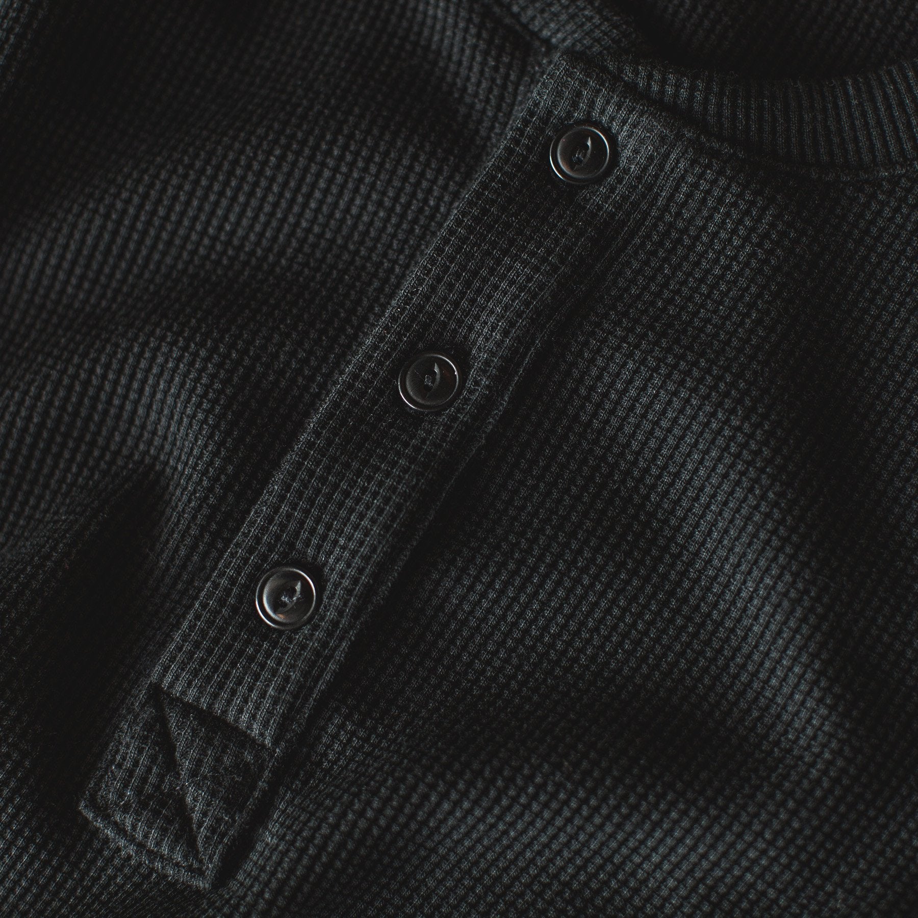 The Henley in Black Merino Waffle
