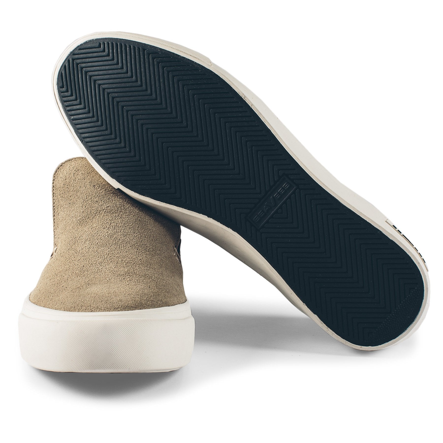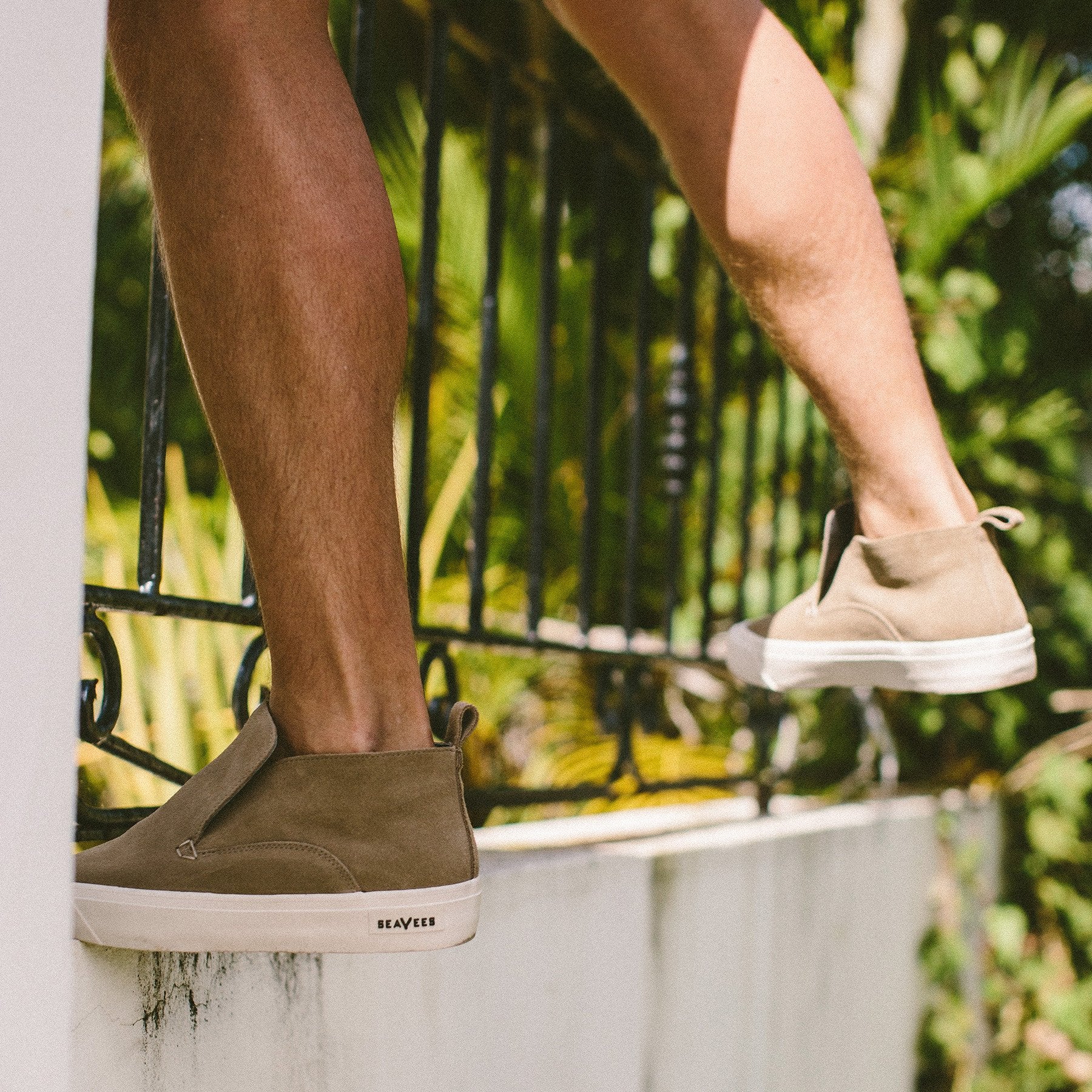 We teamed up with SeaVees to launch the 12/64 Huntington Middie ankle boot. This slip-on shoe is modern, simple and comfortable. Limited in Elmwood.