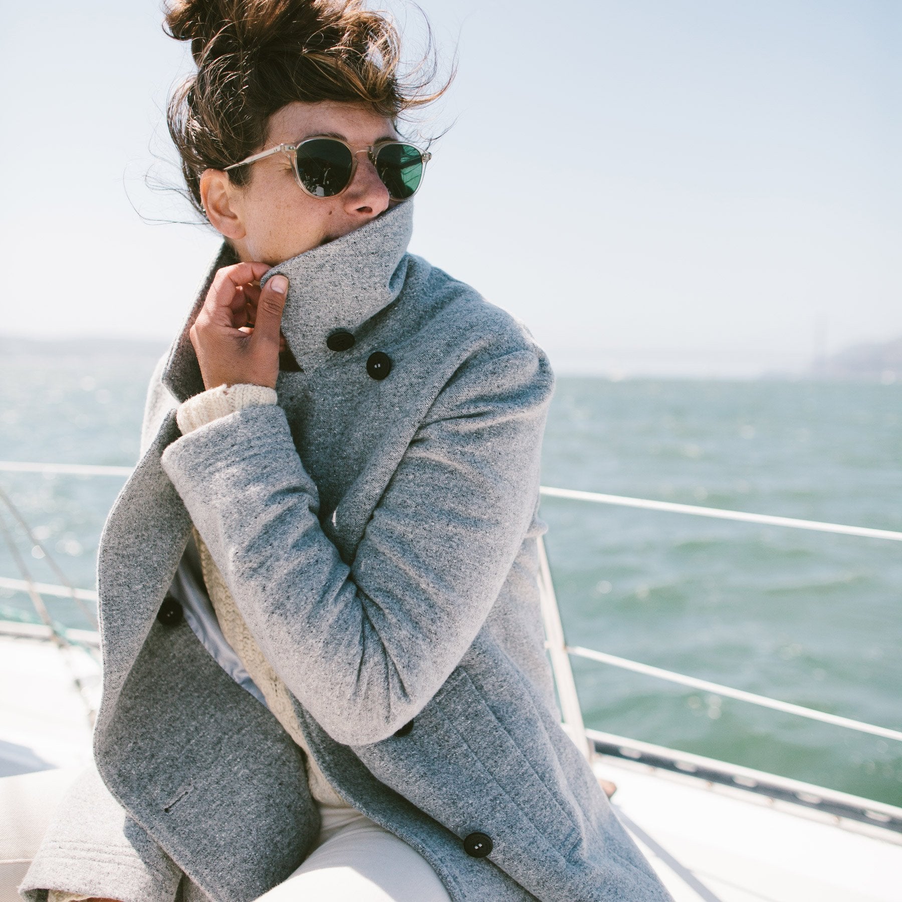 The Mariner Peacot is made of Italian boiled lambswool, making it a wardrobe staple on a cold evening over a dress or thrown over a button down. In-Stock Now.
