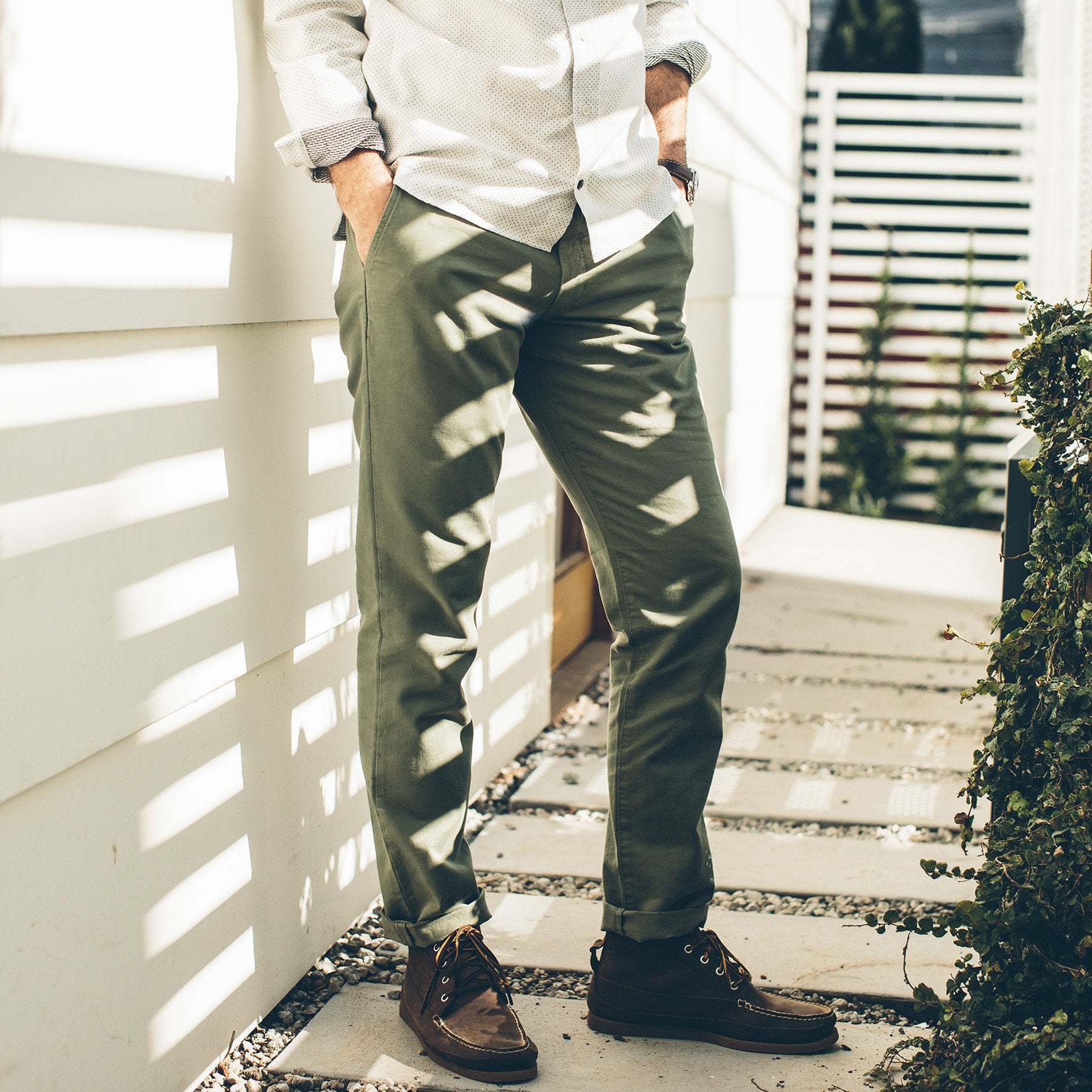 Simple, slim, and classic flat front chinos, these pants are the most comfortable and hardest wearing Chinos out there. Now in Army. Shop Essentials