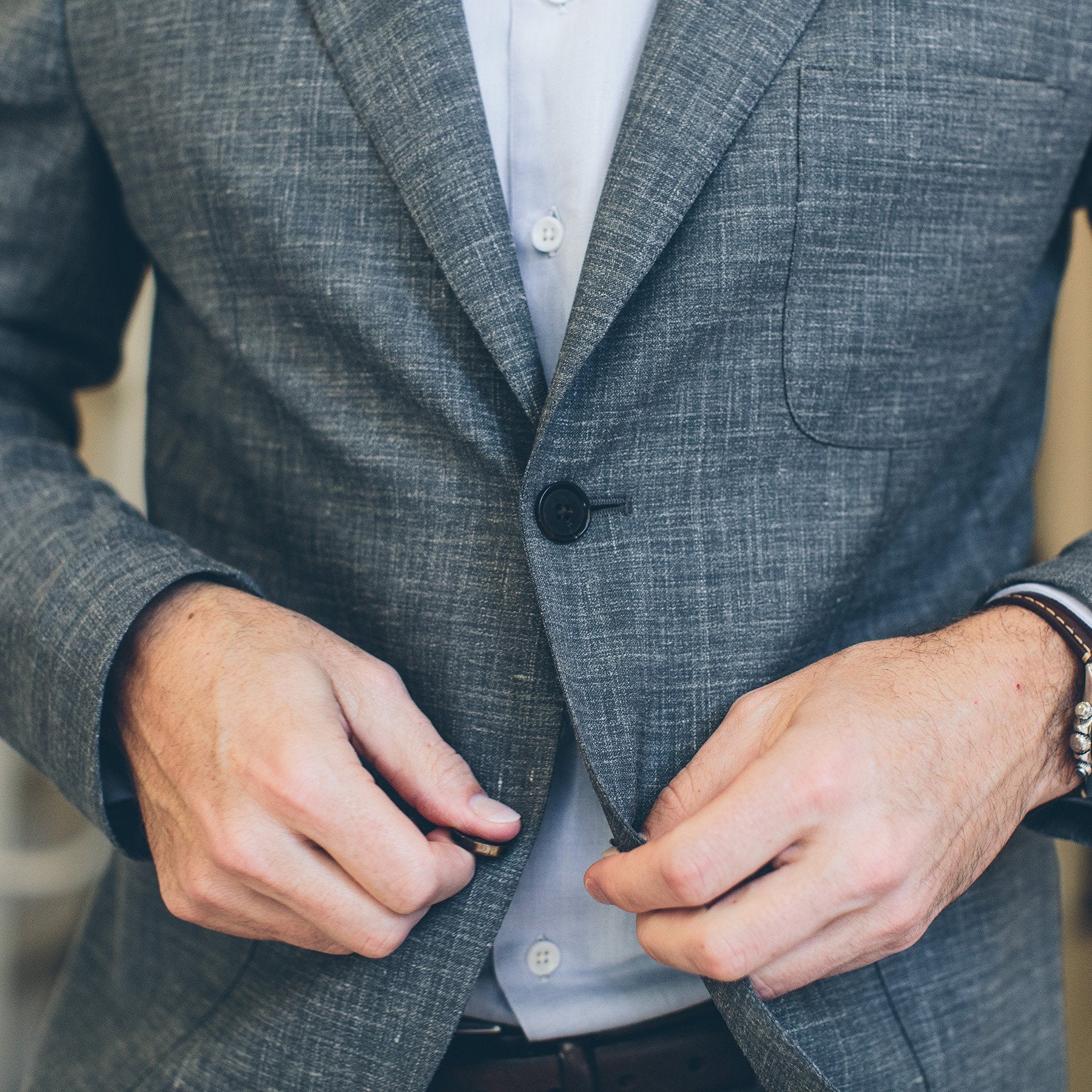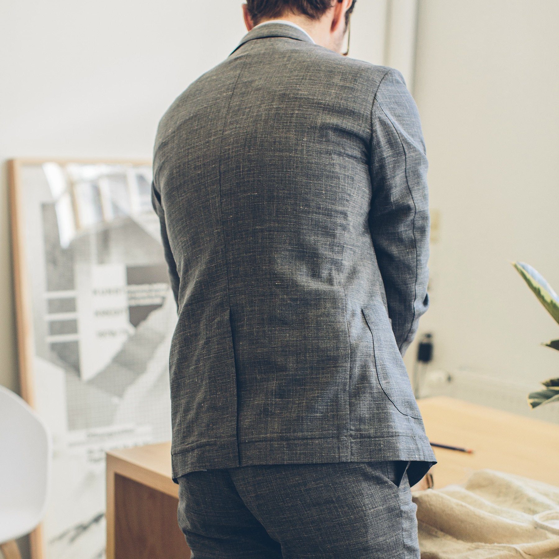 Hand-tailored in Portugal.  This jacket is when you are unaware of the dress code.  Dress it up with trousers or down with a pair of denim. Limited in Charcoal.