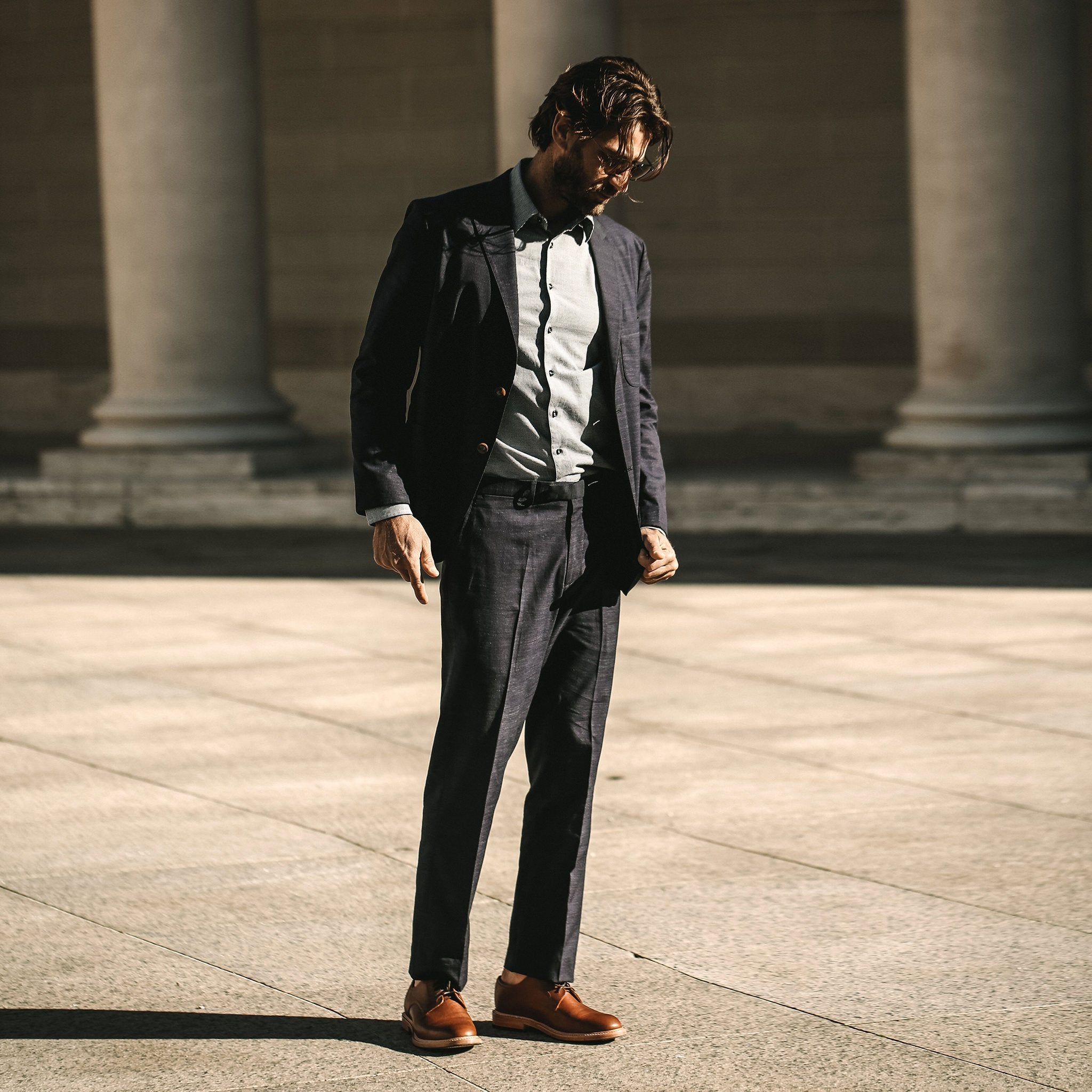 The Telegraph Trouser in Navy Slub from Taylor Stitch.
