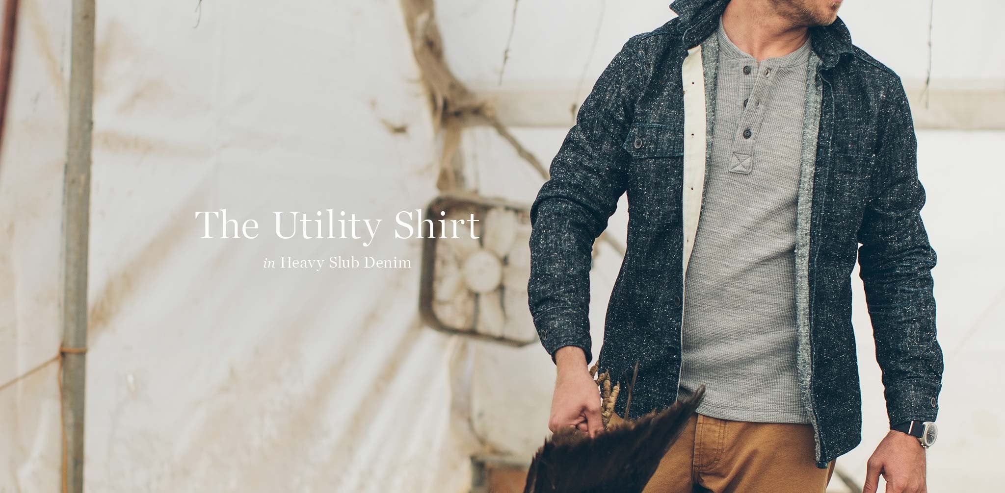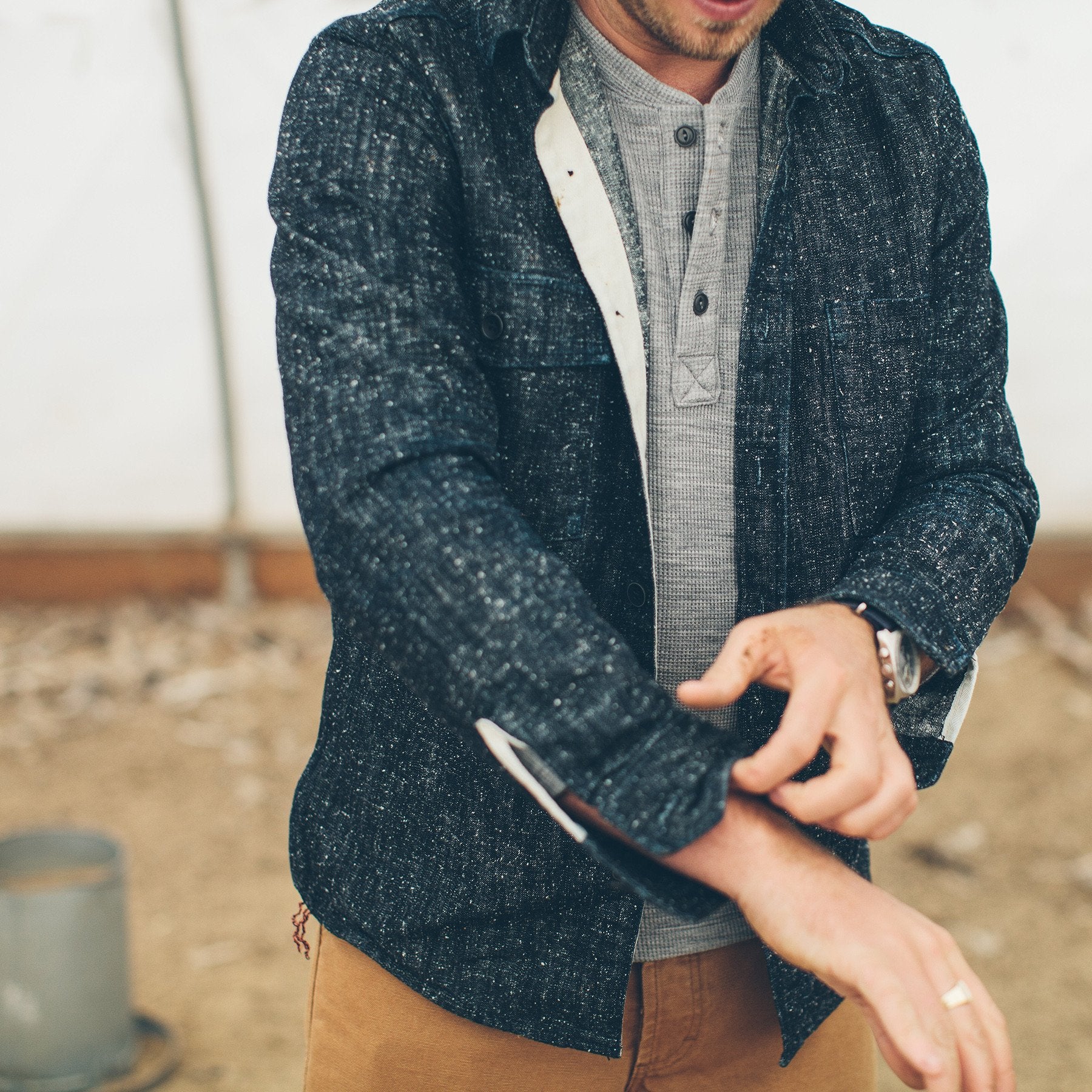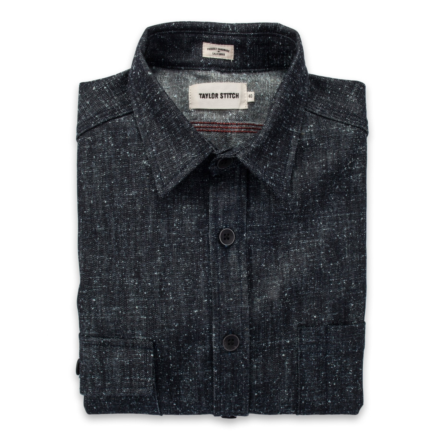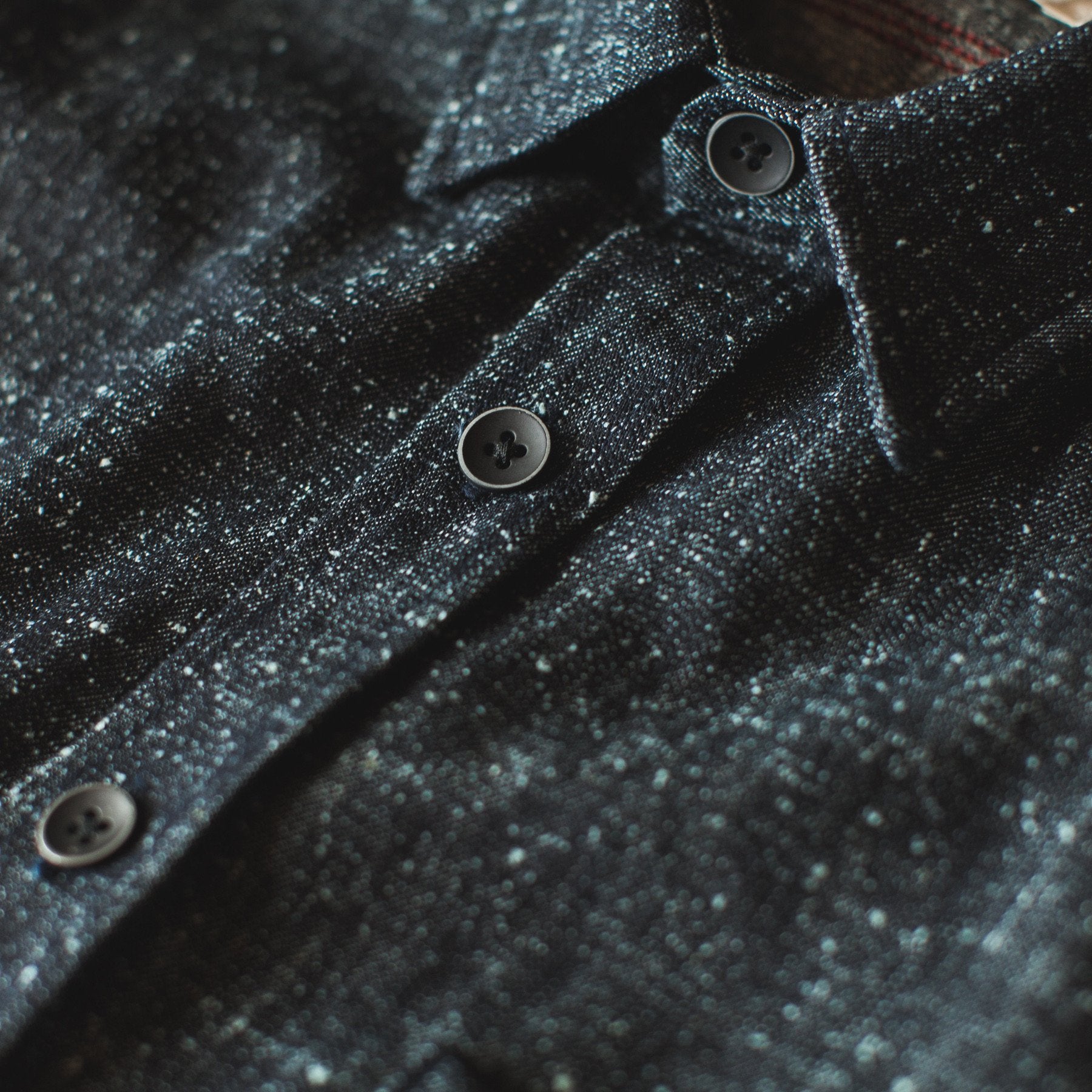 Constructed from heavy slub denim, its got the bones of your grandfather's burly work shirt, with a modern tailored finish. Limited Quanitites.
